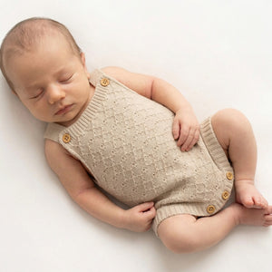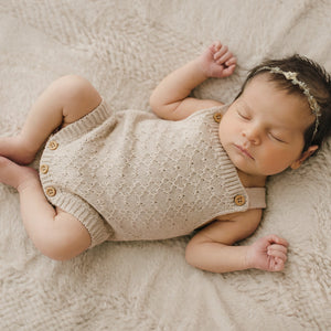 Our stunning Aria Knit Rompers feature a gorgeous heirloom knit design, complete with buttons at front for ease of use. Available in two gorgeous shades.