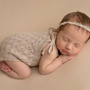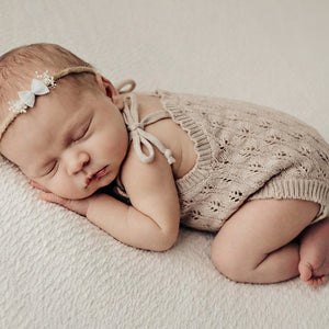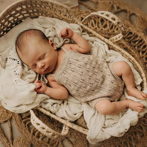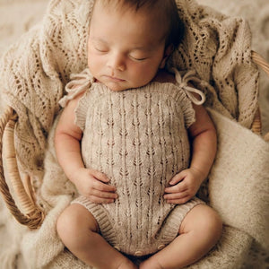 Our adorable Evie Knit Rompers feature a gorgeous embroidered botanical leaf pattern throughout with dainty tied shoulder straps. Available in two gorgeous shades!