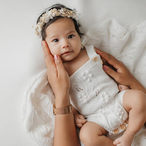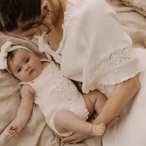 You're guaranteed to fall in love with our adorable Little Leaf Rompers!  Featuring fake buttons on the front with two sets of adjustable buttons on the back, they fit newborn right up to 4 weeks of age. A stunning embroidered leaf & bud pattern features on the front with buttons at bottom for ease of use. Available in two gorgeous shades!