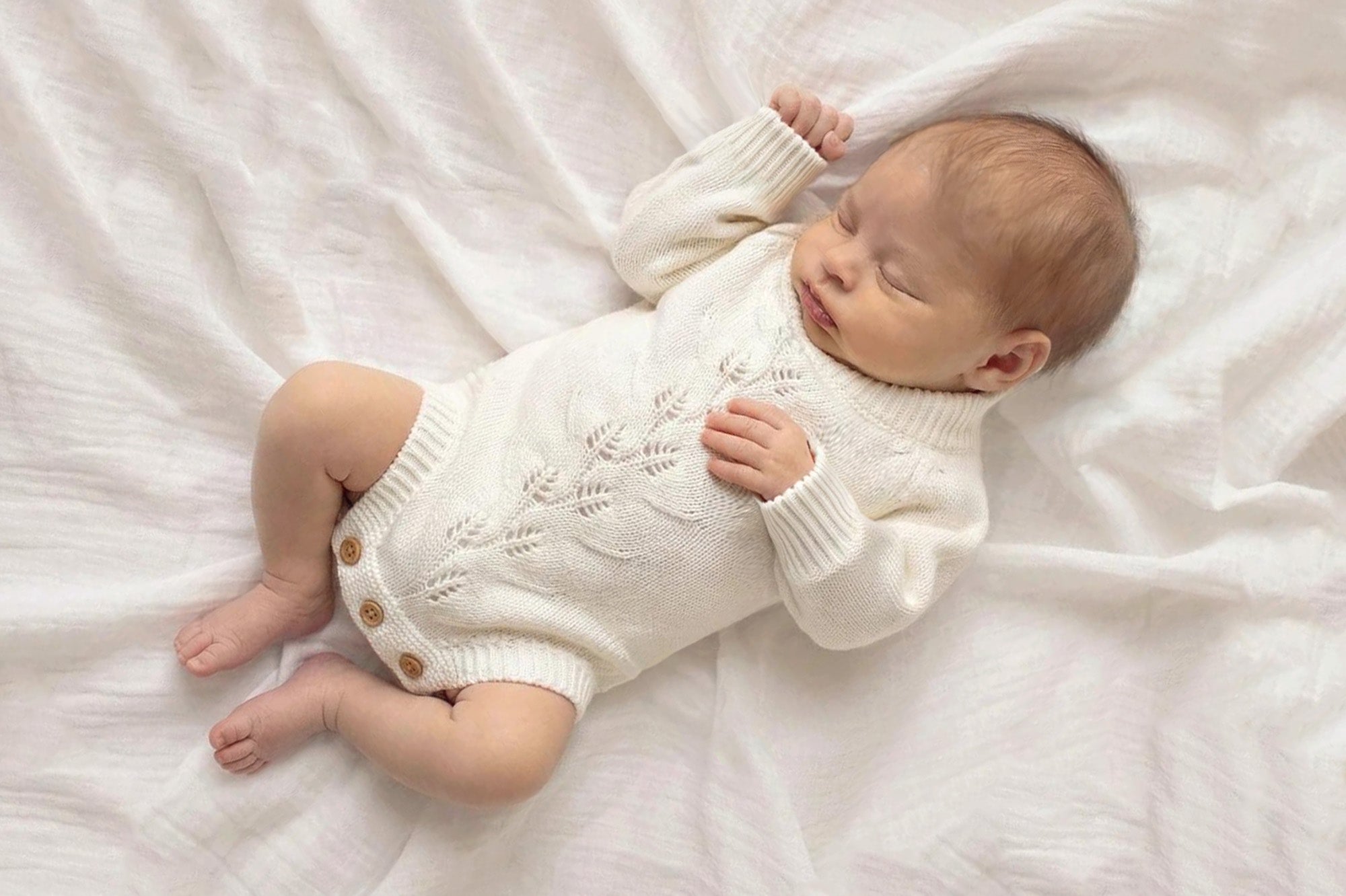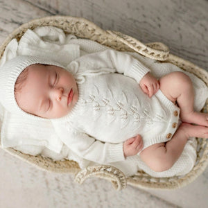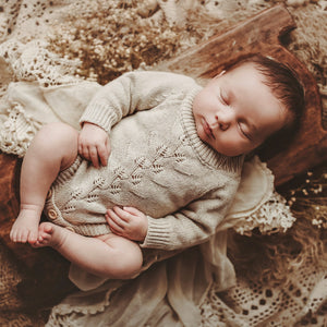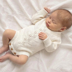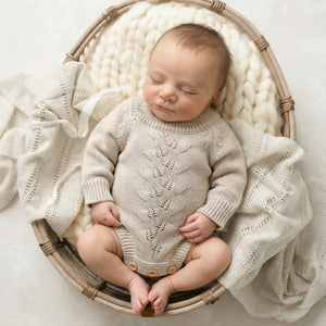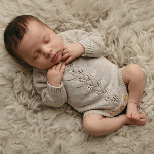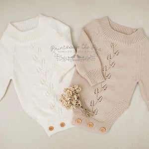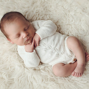 Our stunning Willow Knit Rompers feature a beautiful pointelle botanical design on the front with buttons at bottom for ease of use. With gorgeous long sleeves, they're super cute and your clients are guaranteed to love them! Available in two gorgeous shades.