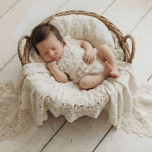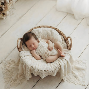 These stunning ivory lace wraps feature an amazing crocheted boho pattern with exquisite floral embroidery & delicate mandalas. Beautiful to use as a statement wrap or layer in your next newborn photography session.